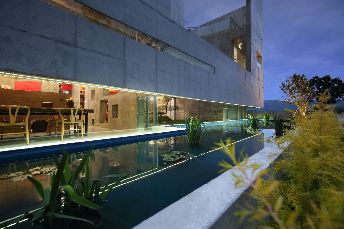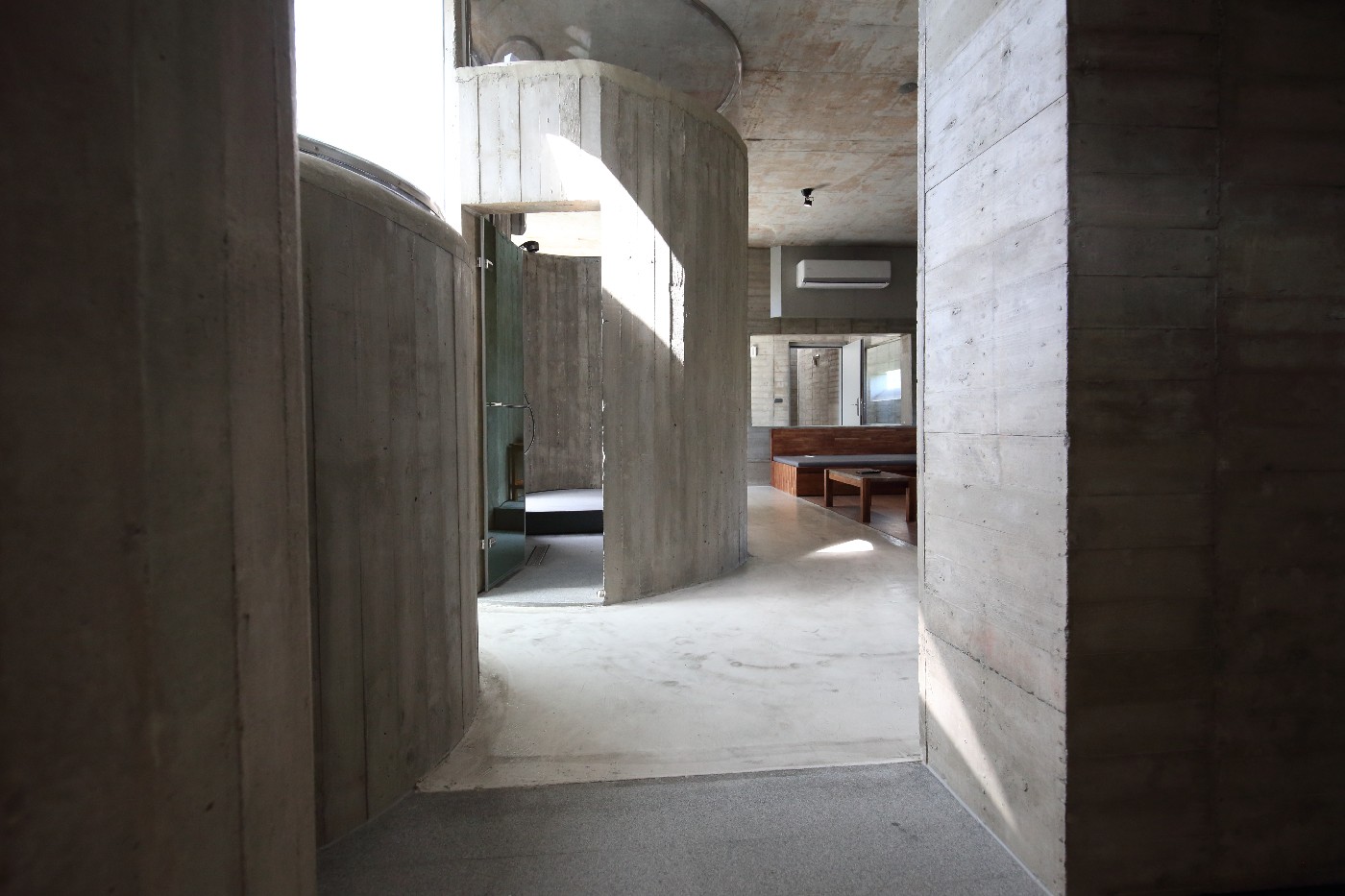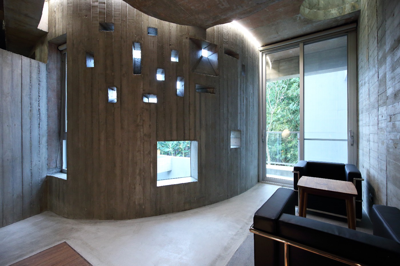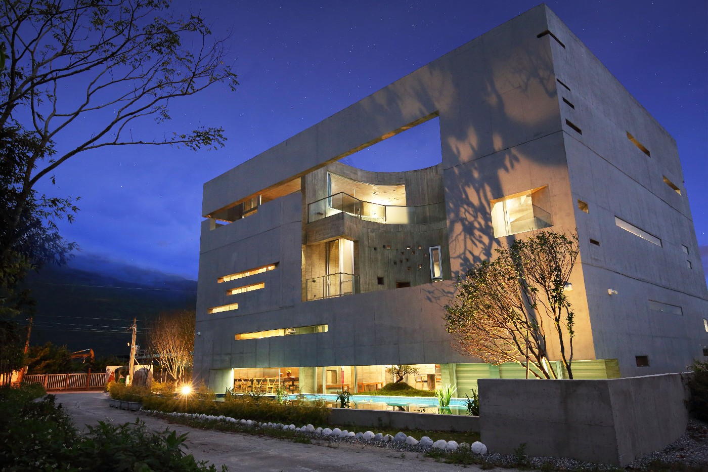 清水模的灰色,搭配大自然色調家具,展現了差異性的協調。 每個轉角,都是一處光景,透過大開窗景追逐自然四季的變化,感受光與影的共舞。